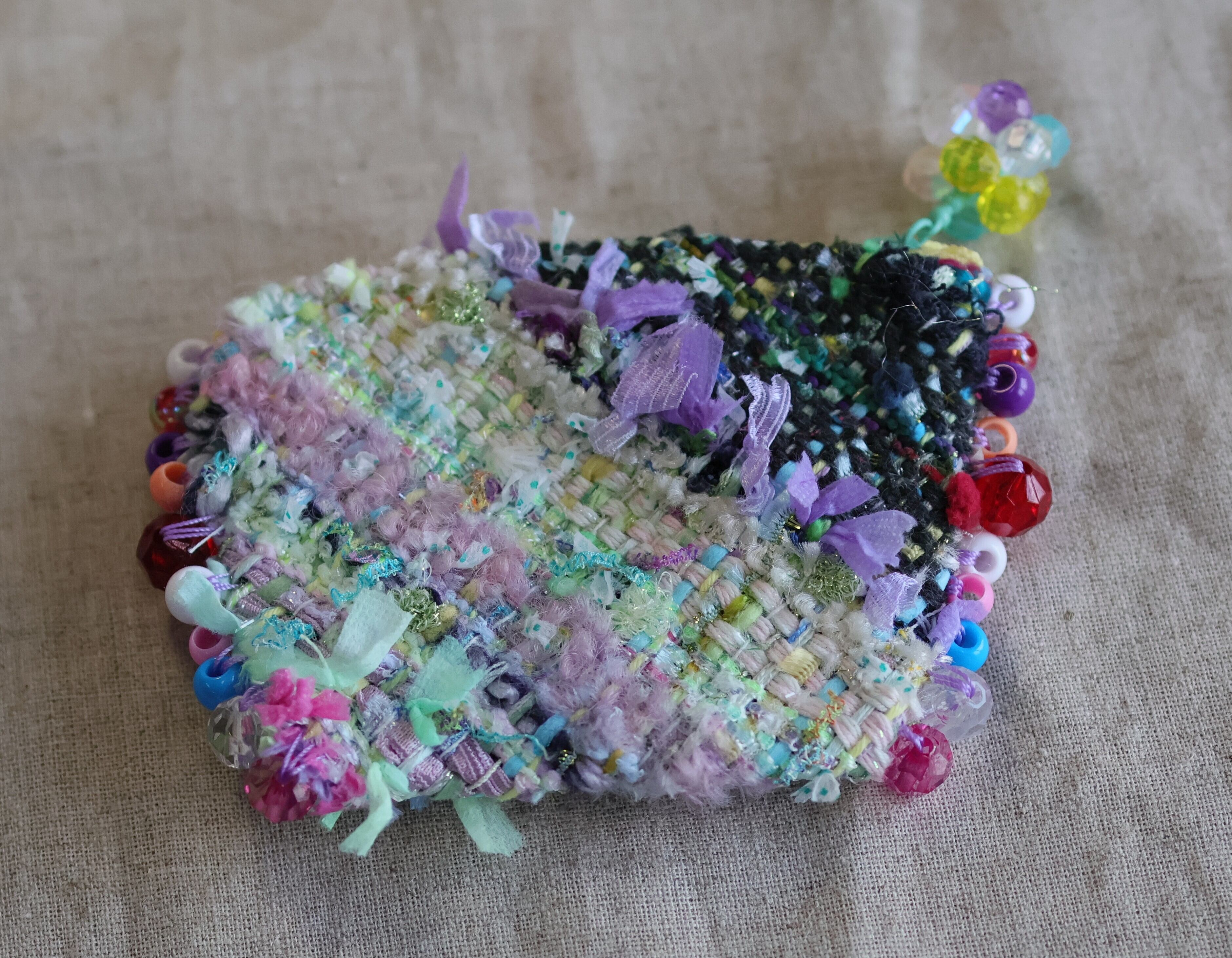 ハニカムツイードとビーズのミニポーチ⑤