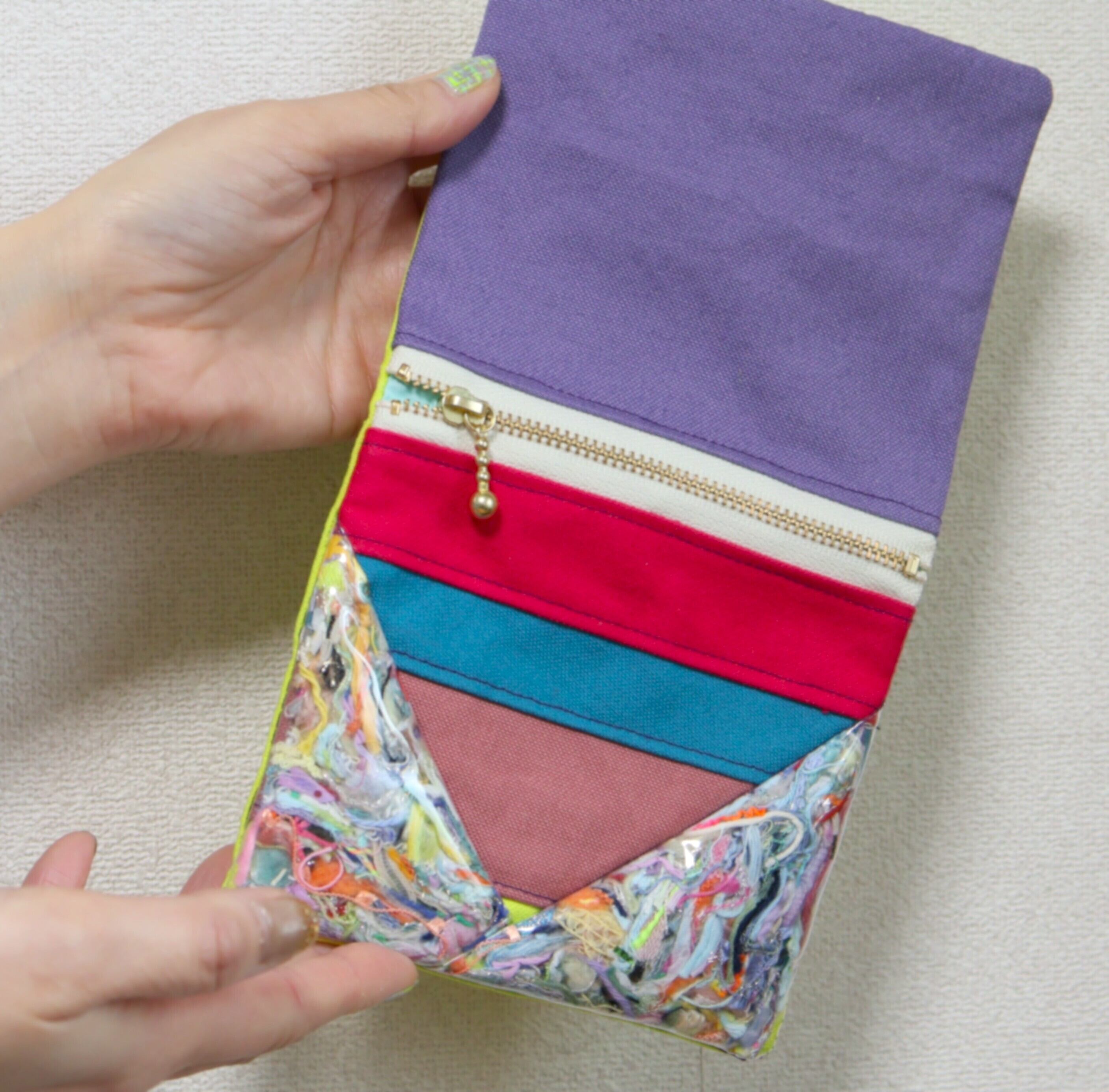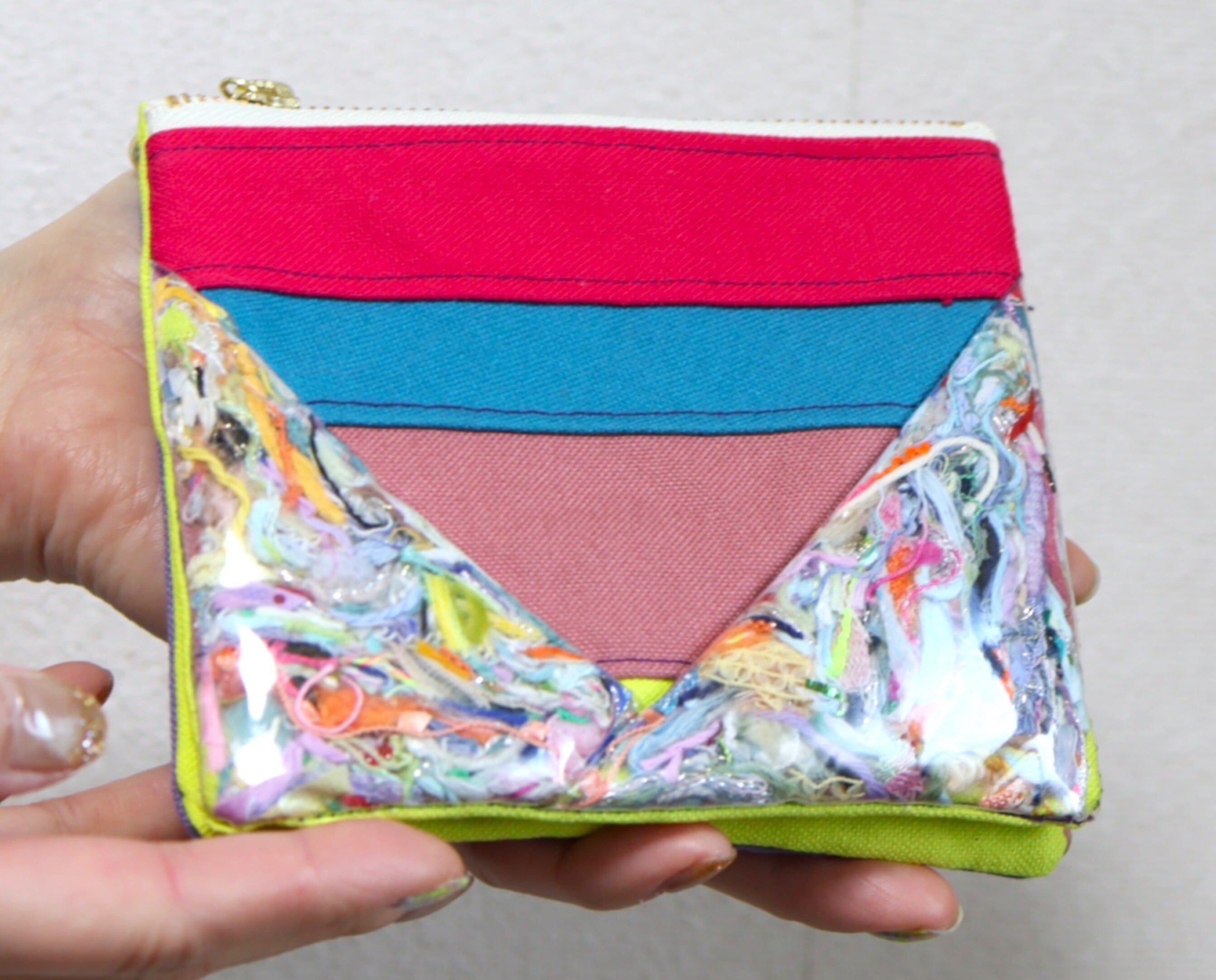 開閉の際はマグネットで簡単に、形を変えられる!糸のかけらがカラフルでデザイン性もバッチリ!