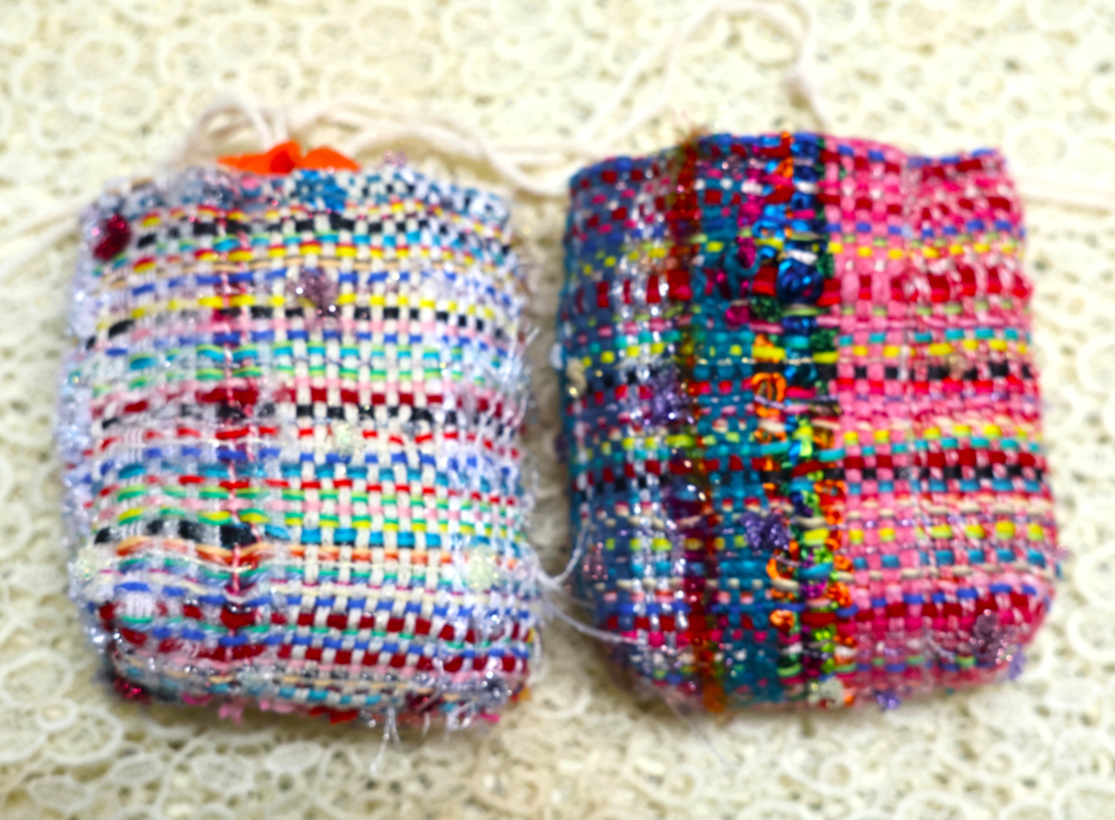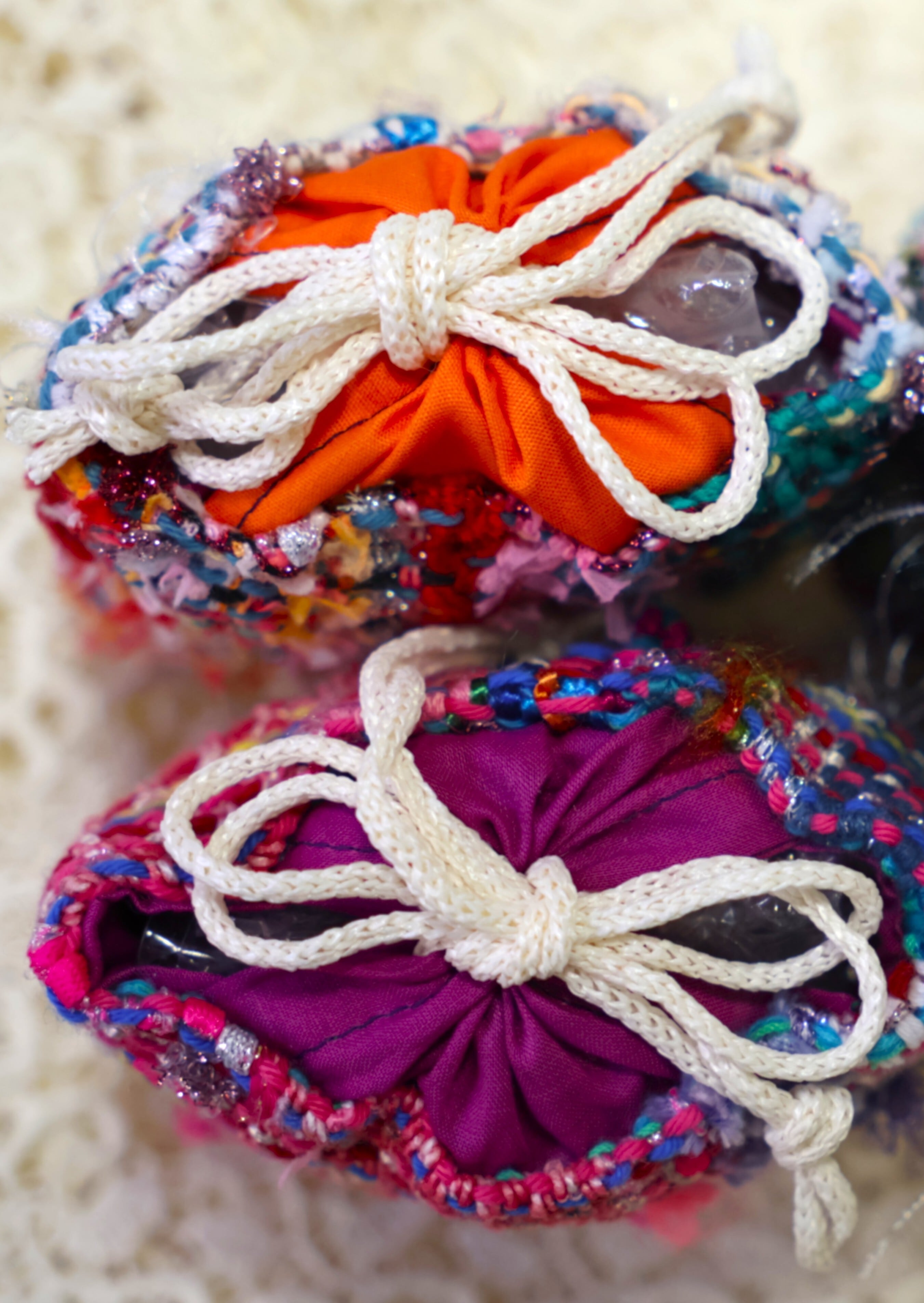 ハニカムツイードの小さなきんちゃくポーチ2個セット①
